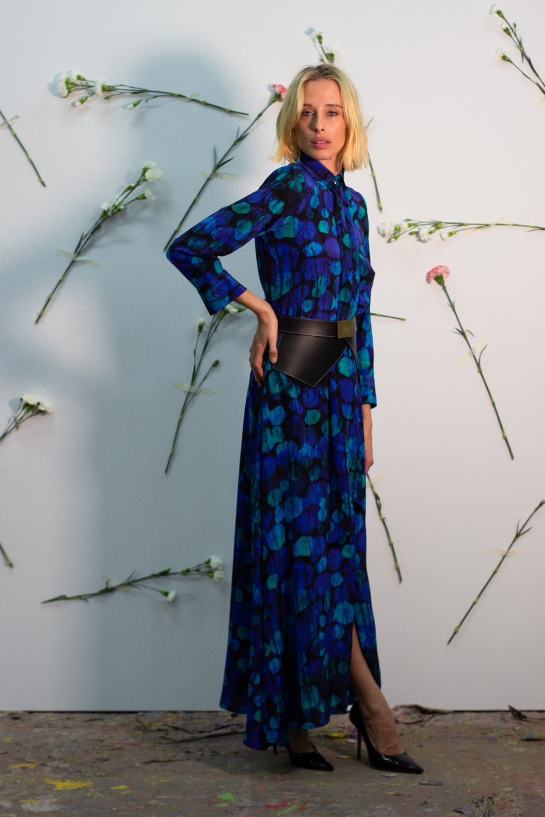 Serene Blue Dress is a long silk shirt-style dress. A versatile and elegant piece that you can wear all year round. With 3/4 sleeves and front buttons for closure. You can wear it with tights at winter weddings or leave it open in the summer for a touch of kimono style. Its timeless design and the quality of silk make this dress an elegant and adaptable choice for any season. Additionally, this dress is made from 100% silk and features wrinkle-resistant treatment, making it an ideal travel companion, allowing you to look impeccable.
