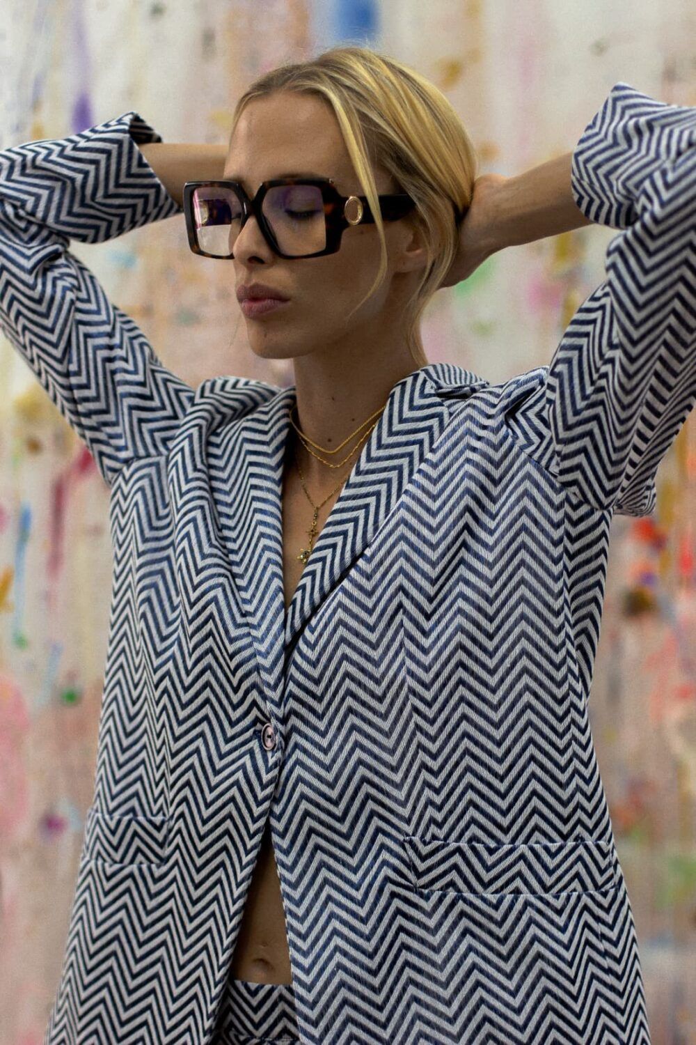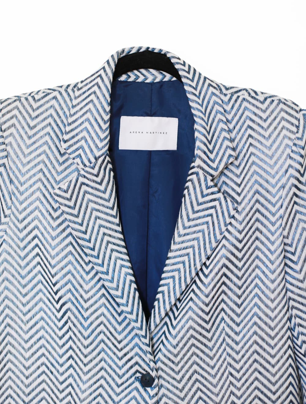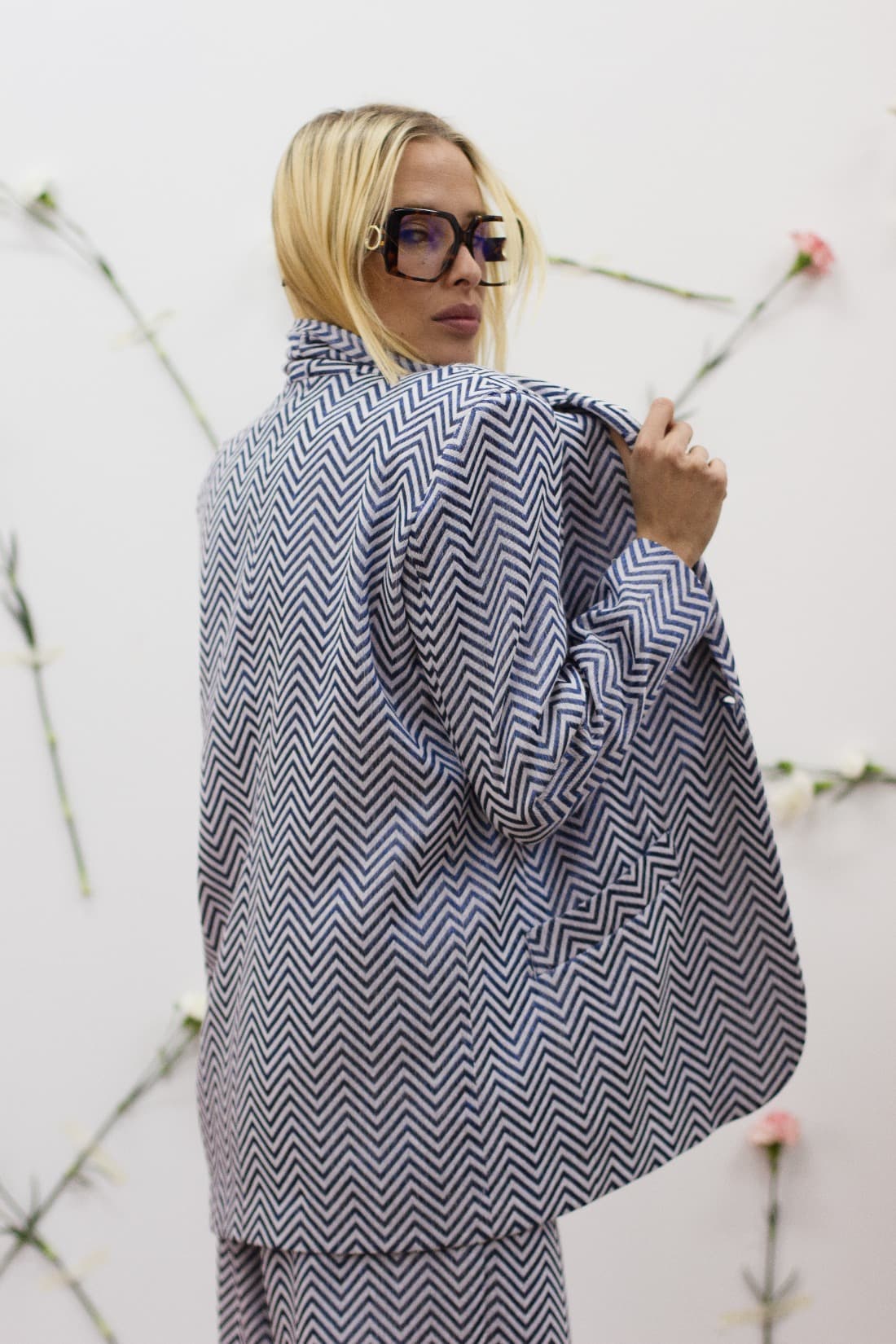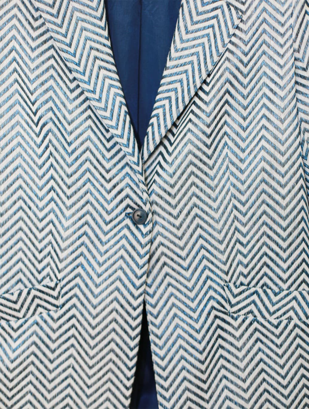 Blazer de JACQUARD estilo marino. Un clásico atemporal con un toque distintivo. Su estructura clásica y calce perfecto te brindan un estilo elegante y versátil. El motivo en zigzag le añade un toque marino encantador. Combínalo con el pantalón marine a juego para lograr un conjunto sofisticado que no pasará desapercibido.